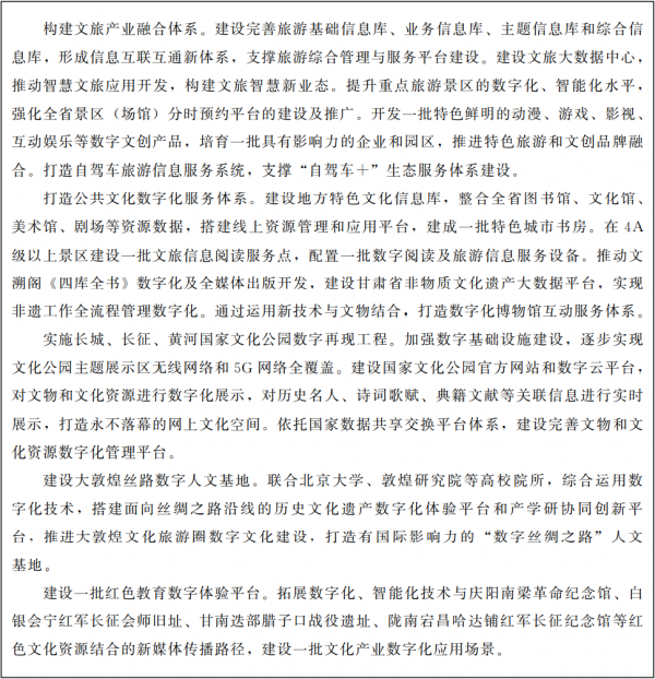 ????深入挖掘甘肅特色文化資源,提升旅游企業(yè)數(shù)字化、智慧化水平,建設(shè)市場運(yùn)營端、游客體驗(yàn)端和政府管理端垂直細(xì)分平臺,推進(jìn)“信息全覆蓋、產(chǎn)品全覆蓋”的全域旅游特色工程建設(shè)。構(gòu)建以新媒體平臺為核心的網(wǎng)絡(luò)營銷體系,實(shí)施“短視頻上的甘肅”行動,進(jìn)一步提升“一部手機(jī)游甘肅”平臺服務(wù)能力,打造文化旅游甘肅名片。