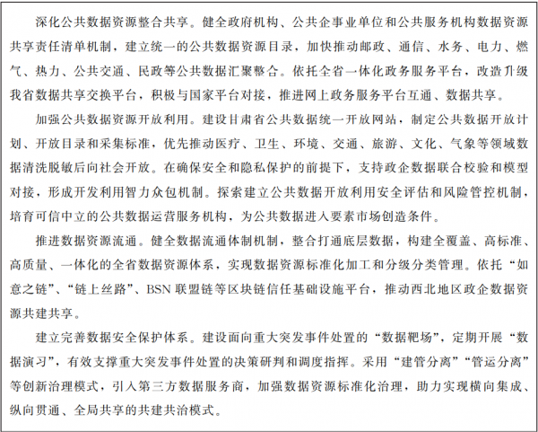 ????實(shí)現(xiàn)“一年顯成效、三年上臺階、五年樹標(biāo)桿”的目標(biāo),數(shù)據(jù)要素市場基本建立,數(shù)字產(chǎn)業(yè)化發(fā)展活力不斷增強(qiáng),產(chǎn)業(yè)數(shù)字化水平有效提升,打造東西部算力資源調(diào)度先導(dǎo)區(qū)、全域經(jīng)濟(jì)數(shù)字化轉(zhuǎn)型樣板區(qū)、社會治理創(chuàng)新應(yīng)用示范區(qū)。