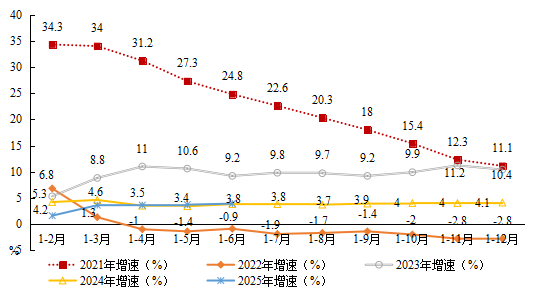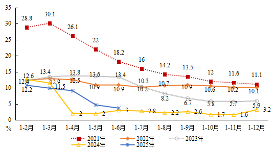 圖5 ?2023-2025年月度累計(jì)進(jìn)出口增速