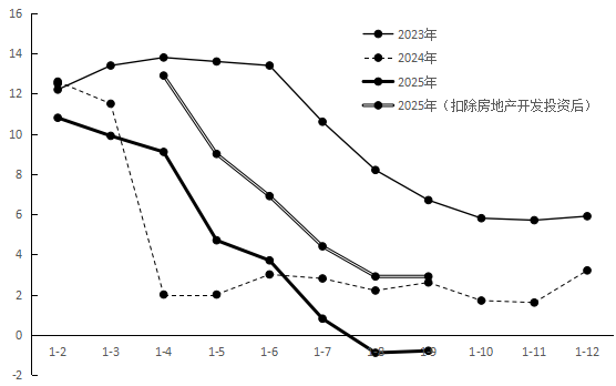 圖1 ?2023—2025年甘肅固定資產(chǎn)投資月度累計(jì)增速(%)