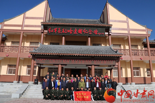 采訪團在哈達鋪紅軍長征紀念館前合影