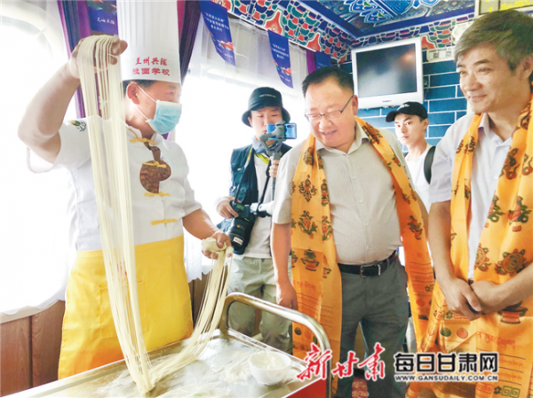 整趟列車集合了“吃、住、行、游、購、娛”和“商、養(yǎng)、學(xué)、閑、情、奇”等文旅全要素,將甘肅深厚的歷史文化、豐富的旅游資源和琳瑯滿目的文創(chuàng)商品、非遺產(chǎn)品、農(nóng)特扶貧產(chǎn)品,濃縮裝載到專列各節(jié)車廂,并以直播帶貨的形式進行現(xiàn)場“圈粉”,從一件件精美的文創(chuàng)產(chǎn)品,到生動鮮活的非遺活態(tài)展示,從牛肉面拉面技藝展示,到擺上火車餐桌的各種美食小吃,無不直觀展現(xiàn)著甘肅文化旅游的特色和品質(zhì)。