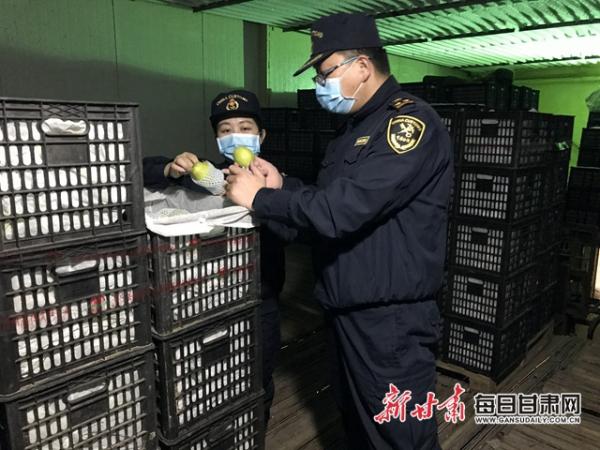 蘭州海關(guān)工作人員對我省出口水果進(jìn)行檢測。(蘭州海關(guān)供圖)