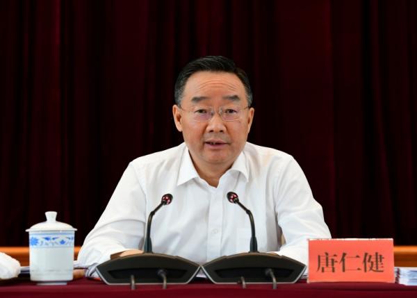 ????省長、省脫貧攻堅領(lǐng)導(dǎo)小組組長唐仁健講話。省領(lǐng)導(dǎo)歐陽堅、孫偉、李榮燦、劉昌林、胡焯、李元平、王嘉毅、石謀軍等出席會議。