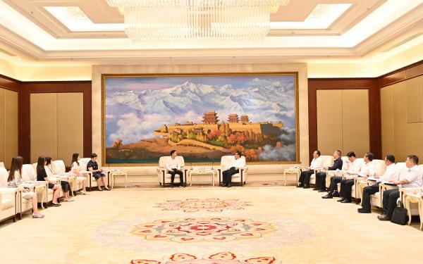 省委副書記、省長任振鶴7月7日在蘭州會見了出席第二十七屆蘭洽會的盤石集團董事局主席田寧一行。