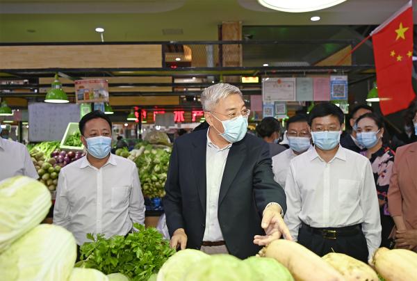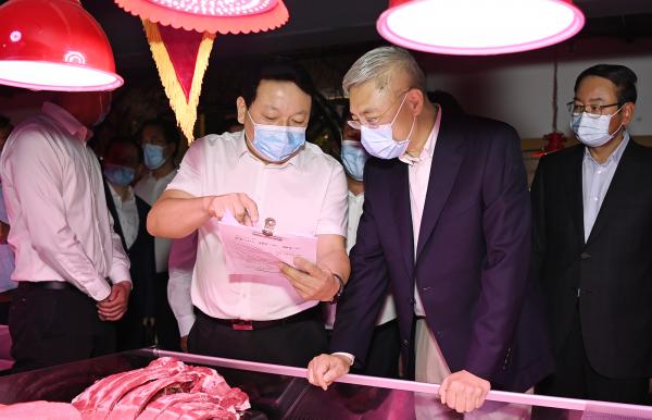 ????城關(guān)區(qū)五泉菜市場(chǎng)處處洋溢著節(jié)日的氣氛。尹弘走進(jìn)市場(chǎng),現(xiàn)場(chǎng)察看疫情防控和食品安全檢測(cè)、商品質(zhì)量價(jià)格等情況,同商戶、買菜市民和市場(chǎng)管理者親切交流,詳細(xì)了解市場(chǎng)供應(yīng)、貨源儲(chǔ)備、經(jīng)營管理、價(jià)格穩(wěn)定等情況。他強(qiáng)調(diào),要強(qiáng)化統(tǒng)籌協(xié)調(diào),多渠道組織貨源,全方位優(yōu)化服務(wù),著力豐富商品供應(yīng)種類,確保節(jié)日期間老百姓“米袋子”“菜籃子”“果盤子”物豐價(jià)穩(wěn)。要加強(qiáng)食品安全和產(chǎn)品質(zhì)量監(jiān)管、價(jià)格監(jiān)管,嚴(yán)格落實(shí)食品安全主體責(zé)任,加強(qiáng)食品特別是進(jìn)口冷鏈?zhǔn)称烦B(tài)化檢測(cè)檢疫,嚴(yán)厲查處各種損害消費(fèi)者權(quán)益的食品問題,守護(hù)好人民群眾“舌尖上的安全”。要持續(xù)抓好常態(tài)化疫情防控,毫不放松抓好“外防輸入、內(nèi)防反彈”和“人物同防”各項(xiàng)工作,落實(shí)公共場(chǎng)所戴口罩、亮碼測(cè)溫、通風(fēng)消毒等健康管理措施,切實(shí)保障人民群眾身體健康和生命安全。