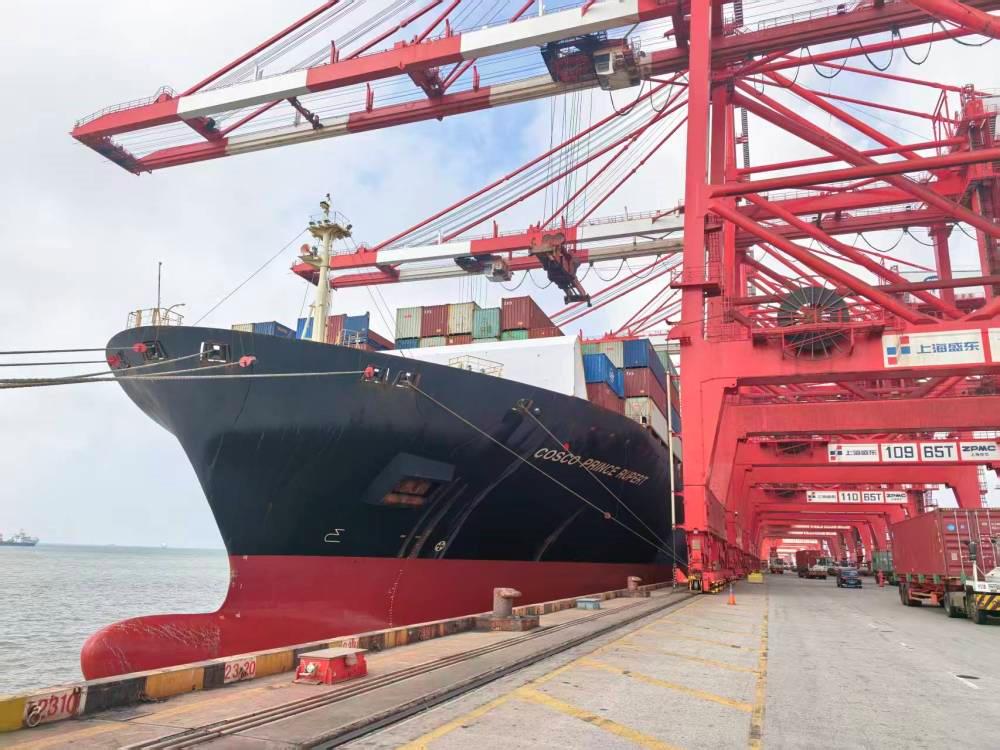 △2025年10月15日,上海洋山深水港,首批來(lái)自秘魯錢(qián)凱港的進(jìn)博會(huì)展品順利卸貨。