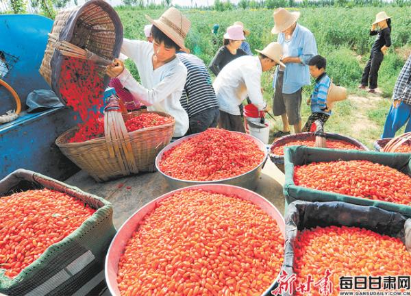 白銀市靖遠(yuǎn)縣五合鎮(zhèn)易地扶貧搬遷安置點(diǎn)村民正在采收枸杞。本文圖片由省發(fā)展改革委提供