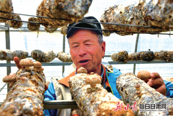 隴西縣馬河鎮(zhèn)楊營村村民正在收獲香菇。