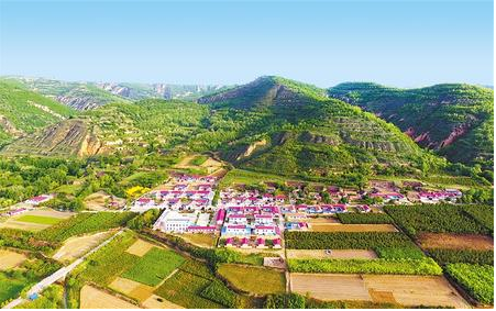 綠色環(huán)抱的寧縣盤(pán)克鎮(zhèn)前渠村。(記者張鐵梁)