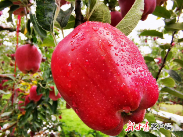 雨中的花牛蘋果。新甘肅·甘肅日?qǐng)?bào)通訊員 文霞 攝