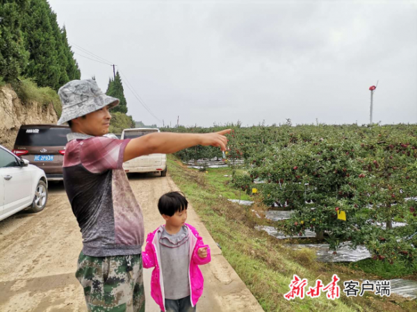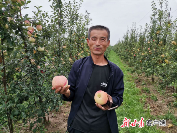 尚寶成介紹果園里的華碩蘋果。新甘肅·甘肅日?qǐng)?bào)記者 王朝霞 攝