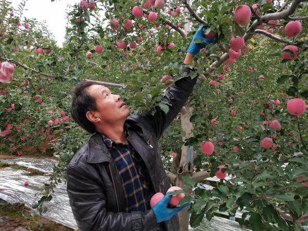 通渭縣新景鄉(xiāng)王灣村果農(nóng)正在采摘豐收的“致富果”。新甘肅·甘肅日?qǐng)?bào)通訊員 許文逸攝