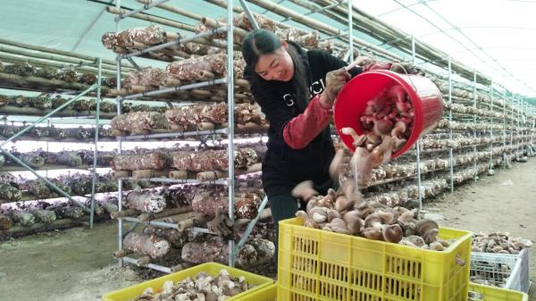 宕昌縣韓院鄉(xiāng)大莊村農(nóng)民在食用菌種植基地分裝采收香菇。新甘肅·甘肅日?qǐng)?bào)通訊員 劉國(guó)慶