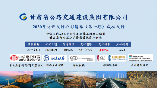 新甘肅客戶端蘭州訊(新甘肅·甘肅日?qǐng)?bào)記者杜雪琴)11月9日,甘肅省公交建集團(tuán)成功發(fā)行10億元小公募公司債券,期限3 2年,發(fā)行利率4.08%。本次發(fā)行的債券是甘肅省公交建集團(tuán)首次在上海證券交易所面向合格投資者公開發(fā)行的公司債券,創(chuàng)我省公募公司債券最低發(fā)行利率。