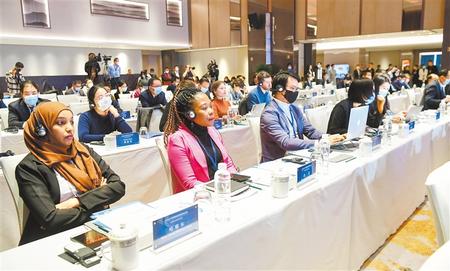 活動中,視頻連線聯(lián)合國機構高級別代表,拉美、非洲等發(fā)展中國家官員。來自毛里求斯共和國等多個國家和4個國際組織的近百名代表參加研討會。