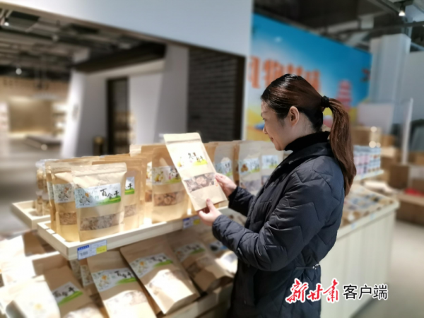 甘肅省在重慶市的中國西部消費扶貧中心設立甘肅館,游客在觀看甘肅特色農產品。