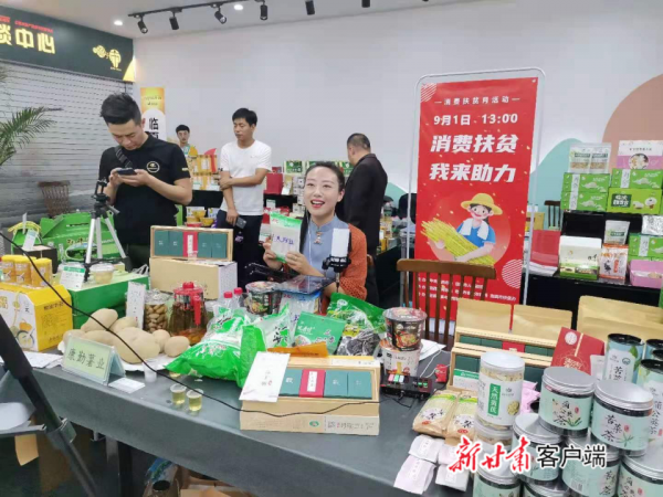 中國消費扶貧生活館甘肅館里,網紅正在直播帶貨。