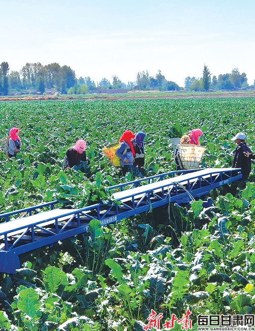 2015年,廣東從玉集團在金昌市成立了金從玉農(nóng)業(yè)科技發(fā)展有限公司,在金川區(qū)雙灣鎮(zhèn)九個井村專門發(fā)展直供港澳地區(qū)的高端綠色蔬菜產(chǎn)業(yè)。經(jīng)過幾年的發(fā)展,蔬菜基地的種植面積已超過1萬畝?!按迕癜淹恋亓鬓D(zhuǎn)給企業(yè),流轉(zhuǎn)費就能保住原本地里的‘收成’,而人從土地上解放出來后,又能干其它的工作。”九個井村黨支部書記張吉成說。2019年,九個井村人均收入超過2萬元,基本上家家都有小汽車、戶戶城里有樓房。