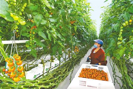 在民樂縣的張掖海升現(xiàn)代農業(yè)有限公司,建設的亞洲單體規(guī)模最大、種植技術最先進、節(jié)能環(huán)保程度最高的現(xiàn)代智能玻璃溫室,溫室內光、溫、水、氣等環(huán)境調控全部實現(xiàn)智能化,技術操作實現(xiàn)了自動化,節(jié)水率達90%以上,年產(chǎn)彩椒、串番茄等果蔬達到5600噸,全部銷往國內高端市場,農業(yè)畝產(chǎn)均值達到了創(chuàng)紀錄的百萬元,相當于全縣170萬畝農業(yè)用地全部種植小麥的經(jīng)濟收益總和,顛覆了傳統(tǒng)觀念對農業(yè)的認知。