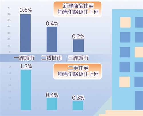 據(jù)測(cè)算,1月份,一線城市新建商品住宅和二手住宅銷售價(jià)格同比分別上漲4.2%和9.6%,漲幅比上月分別擴(kuò)大0.3個(gè)和1.0個(gè)百分點(diǎn)。二線城市新建商品住宅和二手住宅銷售價(jià)格同比分別上漲4.1%和2.5%,漲幅比上月分別擴(kuò)大0.1個(gè)和0.3個(gè)百分點(diǎn)。三線城市新建商品住宅銷售價(jià)格同比上漲3.3%,漲幅比上月回落0.2個(gè)百分點(diǎn);二手住宅銷售價(jià)格同比上漲1.5%,漲幅比上月擴(kuò)大0.1個(gè)百分點(diǎn)。