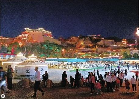 5月4日晚,游客在慶城縣藥王洞馬嵬驛民俗文化村休閑賞景。 隴東報通訊員 俄勝平 攝