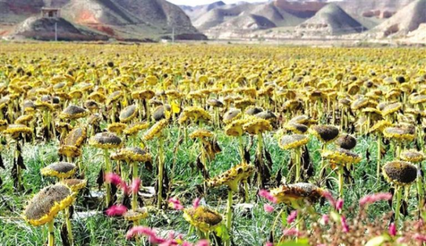 “風景”葵花變“豐”景。在白銀市白銀區(qū)王峴鄉(xiāng)、強灣鄉(xiāng)和武川鄉(xiāng),今夏吸引了無數(shù)游客打卡的3000畝“風景”葵花這幾天徹底收斂了它們傲嬌的“容顏”,變成一個個沉甸甸的葵花盤,等待著葵農(nóng)的收割。