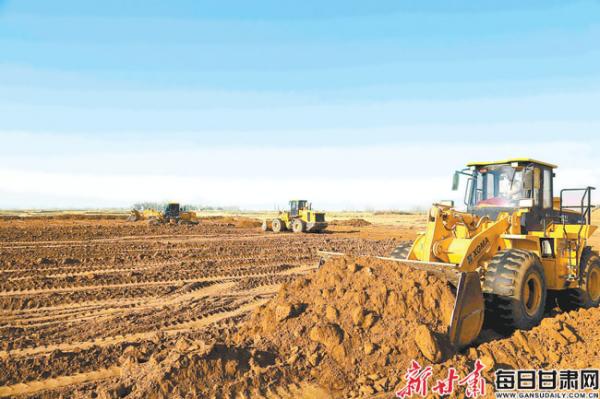 2019年張掖甘州區(qū)高標(biāo)準農(nóng)田建設(shè)任務(wù)7萬畝,進一步改善農(nóng)業(yè)生產(chǎn)條件。圖為2019年11月甘州區(qū)堿灘鎮(zhèn)展開土地平整工作。?新甘肅·甘肅日報通訊員?成學(xué)磊