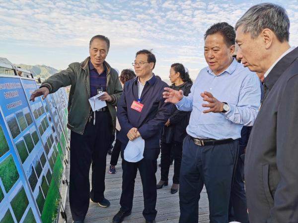與會者調(diào)研夏河縣2019年度退化草原人工種草生態(tài)修復(fù)試點(diǎn)項(xiàng)目取得的成果