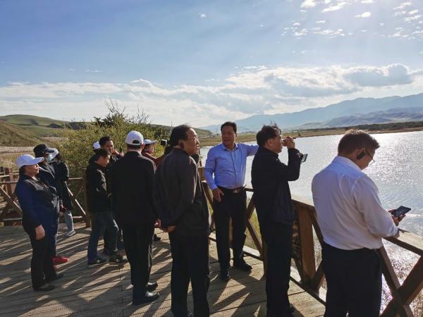 與會者在夏河??普{(diào)研濕地保護(hù)情況