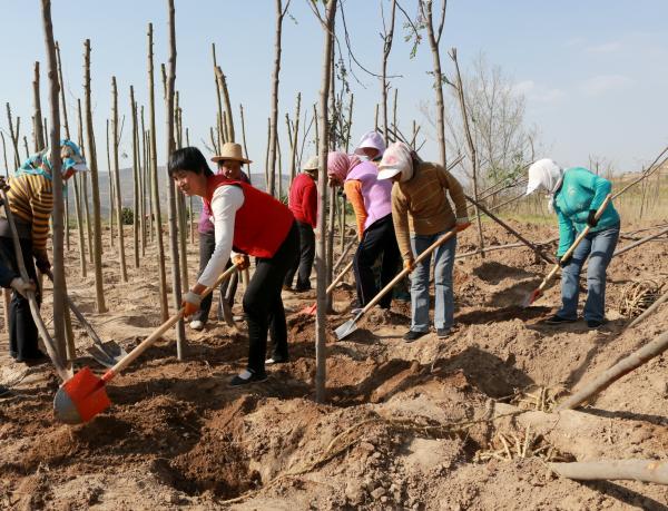 莊浪縣苗圃地里,幾名婦女利用降雨墑情良好的時(shí)機(jī)移栽樹(shù)苗。?新甘肅·甘肅日?qǐng)?bào)記者?張子恒?攝
