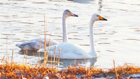 如今與大天鵝同期“赴約”的,還有白鷺、鸕鶿、漁鷗、蒼鷺等水鳥,為冬日的“天鵝灘”增添了勃勃生機(jī)。今年,還首次發(fā)現(xiàn)了國家二級保護(hù)動物白骨頂雞和豆雁。