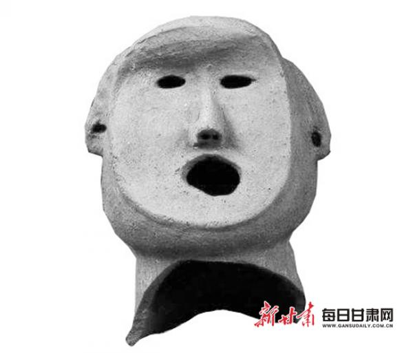這是1987年的一次發(fā)現(xiàn)。那年,甘肅鎮(zhèn)原縣的文博人員在進(jìn)行田野文物普查時(shí),從一個(gè)叫高莊的地方發(fā)現(xiàn)了一件很奇特的彩陶殘器。這件器物為人首形狀,高15厘米,頸徑9.8厘米,紅陶制成。整個(gè)器物中空,外形為人頭狀。制作雖然簡單,圓形的臉下凹,用幾個(gè)大小不等的窟窿來表現(xiàn)眼睛和嘴巴。