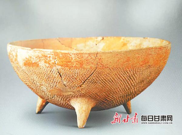 屬于大地灣一期文化的寬帶紋三足彩陶缽