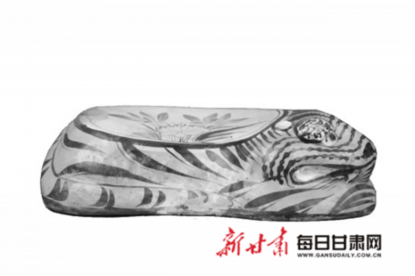 其中,最常見(jiàn)的就是臥虎枕——陶瓷燒制的虎形枕頭。枕頭的外形像一個(gè)趴著的老虎,虎頭向右,被人們做成了虎頭壓在爪子上的形狀。莊浪縣博物館、華亭市博物館都收藏有這樣的臥虎枕。