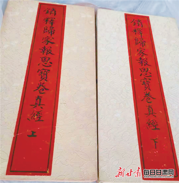 岷縣寶卷有經(jīng)頭、寶卷、套盒三部分組成。經(jīng)頭是宣誦寶卷時(shí)展示的佛像,大都由多幅畫像組成。寶卷內(nèi)容多宣傳抑惡揚(yáng)善,既能興教化、勸操守,又能營(yíng)造熱鬧氣氛,給人以心靈洗禮與感悟。農(nóng)村群眾普遍把它當(dāng)成立言、立德、立身的標(biāo)準(zhǔn),視為“家藏一寶卷,百事無禁忌”。