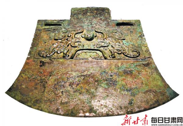 鉞,應(yīng)該是最古老的兵器,早在原始社會就有了。當(dāng)然,最早的鉞是石制的,最高檔的石頭便是玉,甘肅省博物館收藏的一件青玉鉞便是典型代表。這件青玉鉞的文化年代為距今4100年—3700年的新石器時代晚期,是齊家文化的產(chǎn)物。這只磨制規(guī)整、沁色斑斕的青玉鉞讓我們看到了鉞這種兵器最早的模樣。雖然刃口比較窄,但厚脊弧刃鉞的特點(diǎn)已全都具備了。作為兵器,在遠(yuǎn)古時期鉞以自身厚重的分量,闊大鋒利的兵刃成為近身作戰(zhàn)的利器。