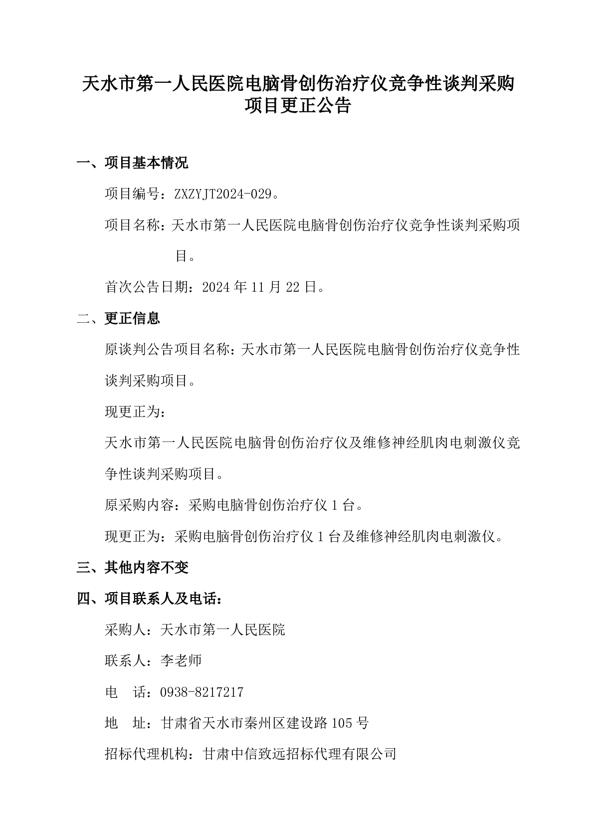 天水市第一人民醫(yī)院電腦骨創(chuàng)傷治療儀競爭性談判采購項目更正公告
