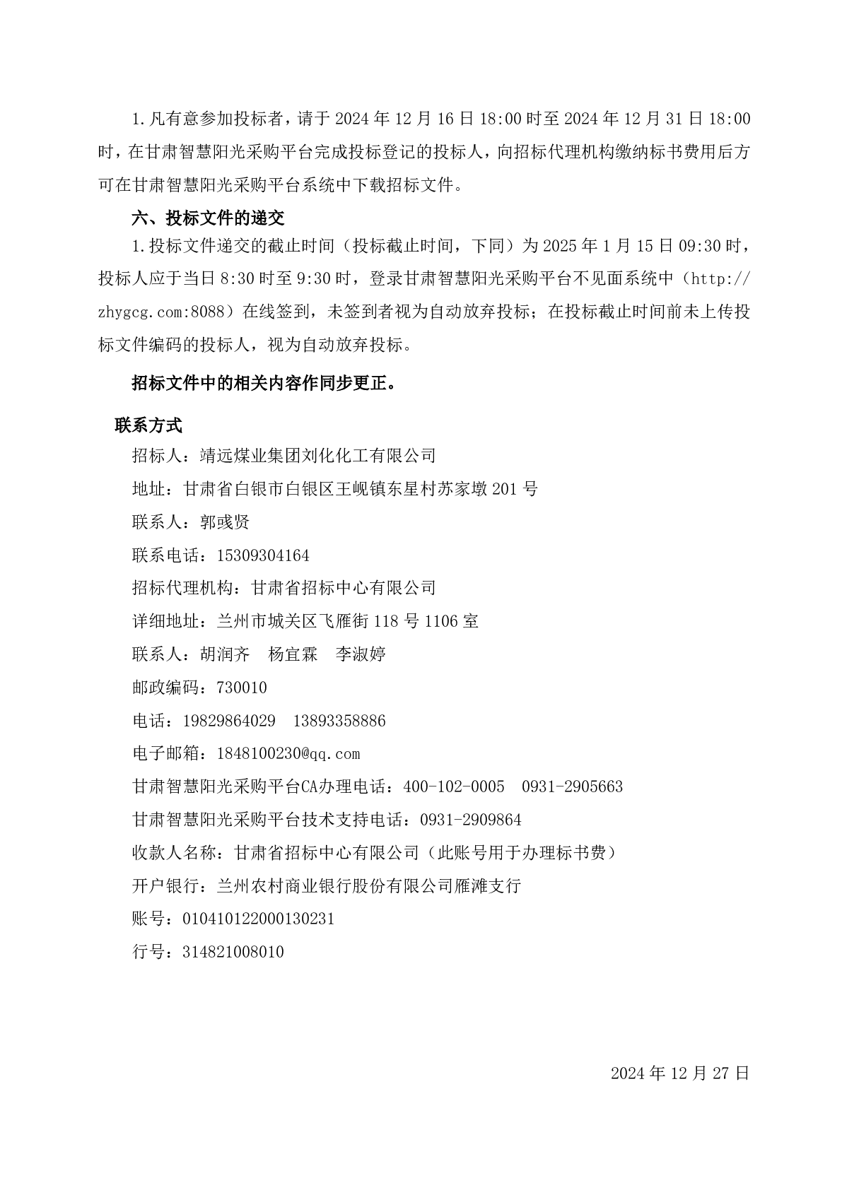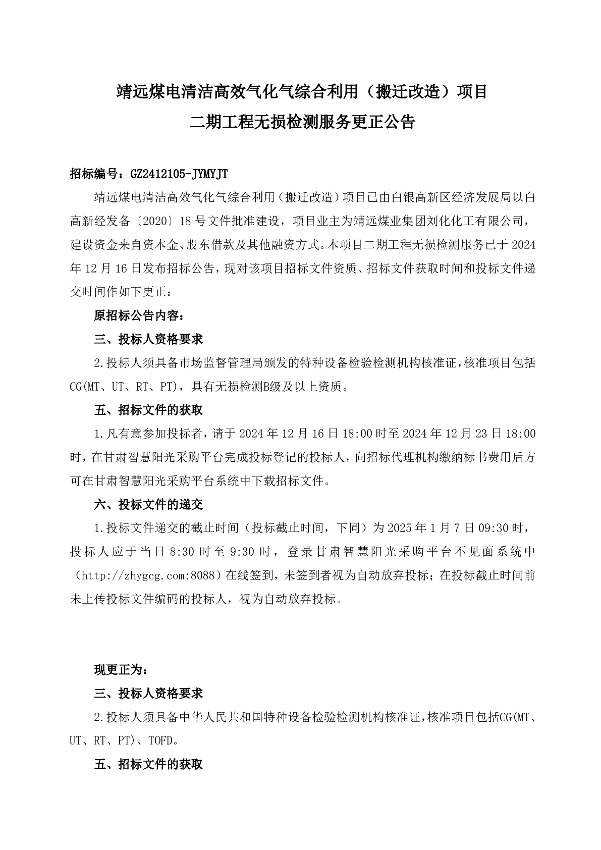 靖遠煤電清潔高效氣化氣綜合利用(搬遷改造)項目 二期工程無損檢測服務更正公告