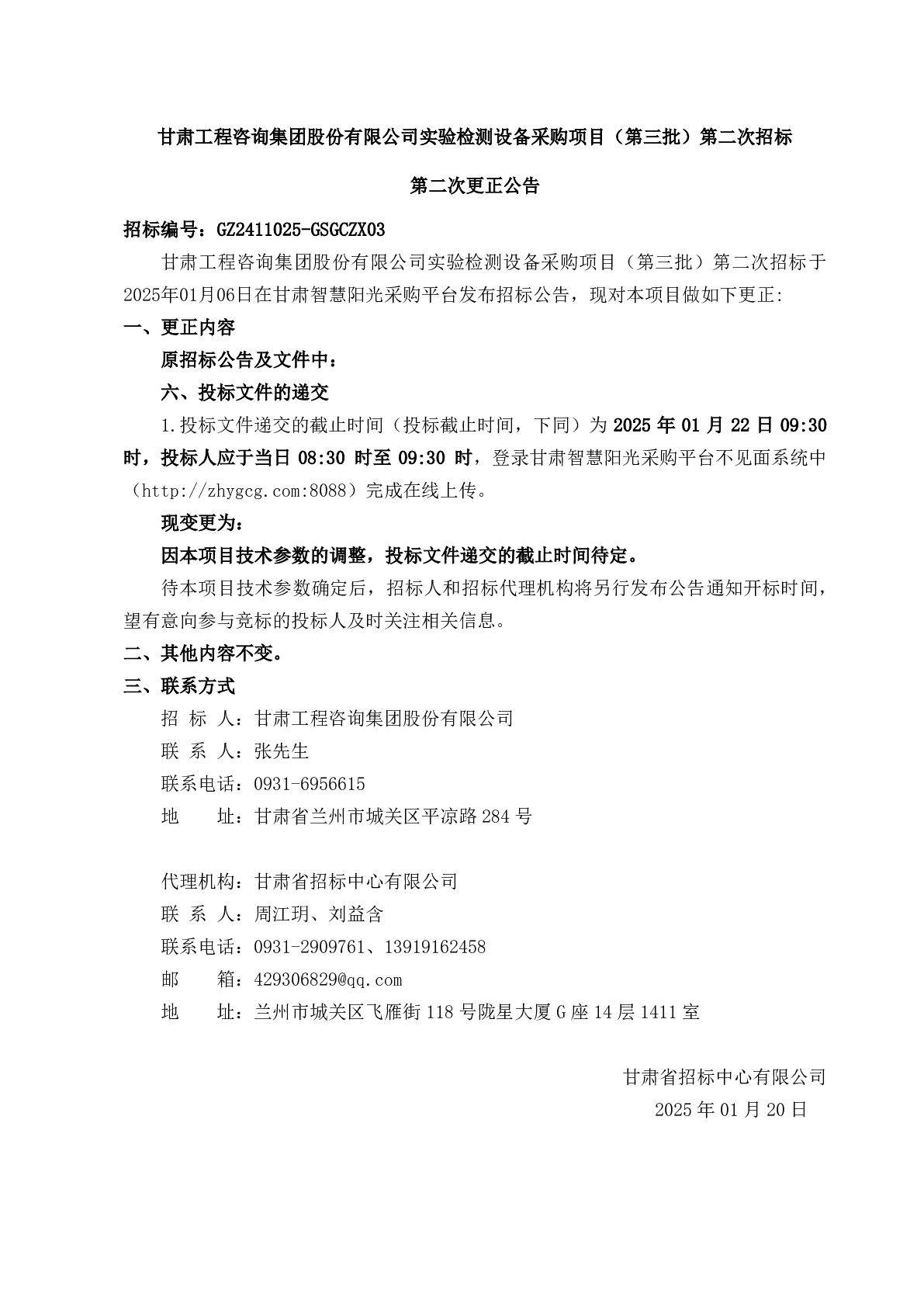 甘肅工程咨詢集團股份有限公司實驗檢測設(shè)備采購項目(第三批)第二次招標 第二次更正公告