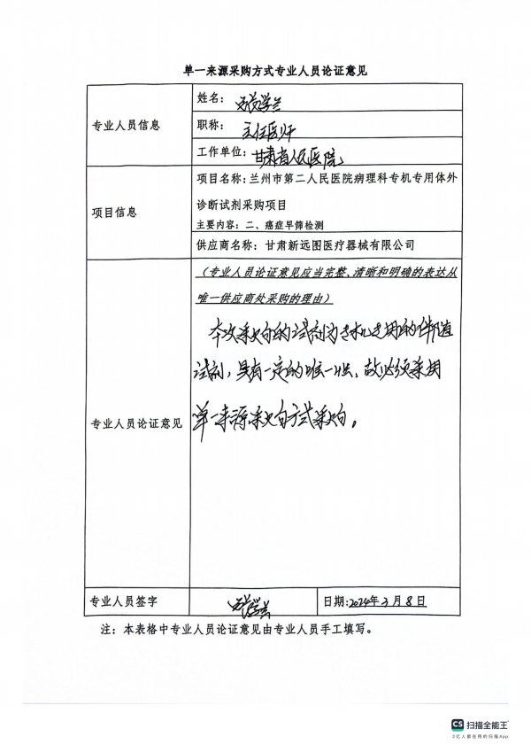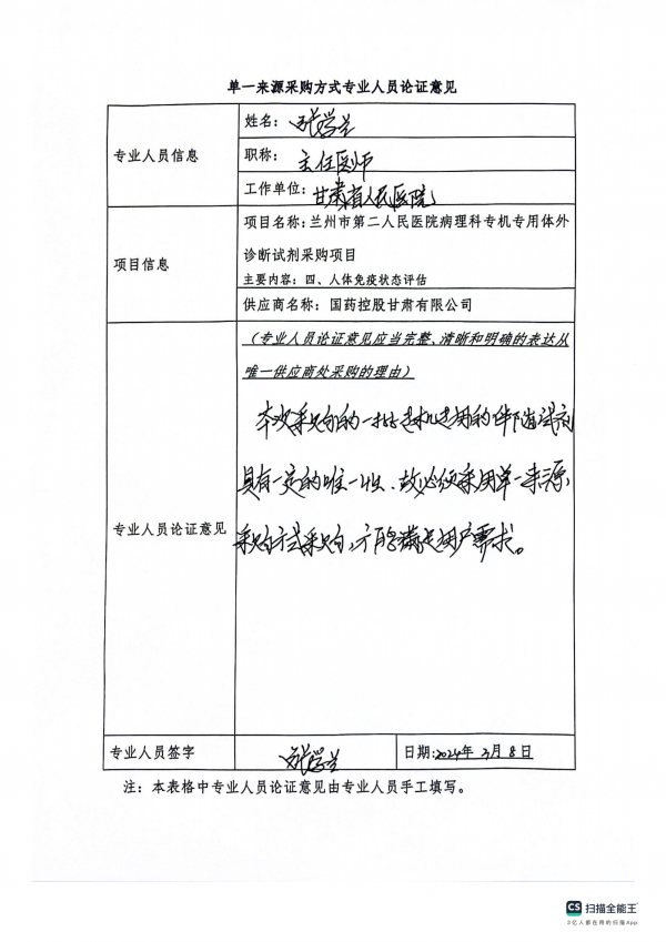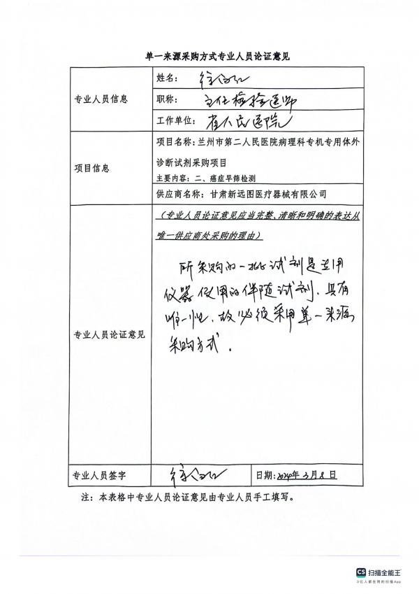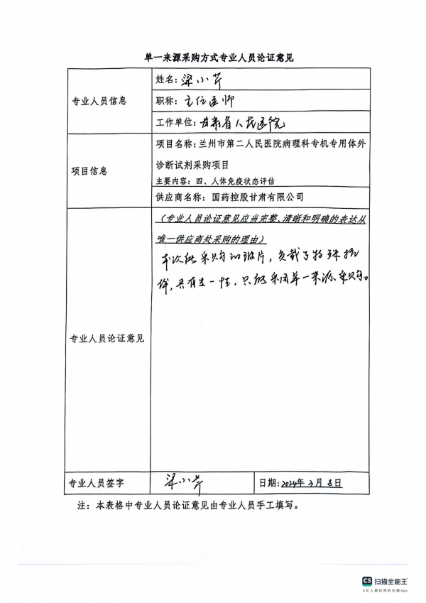 蘭州市第二人民醫(yī)院病理科專機專用體外診斷試劑采購項目