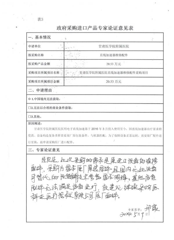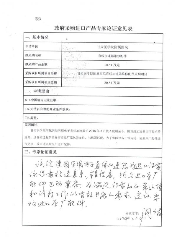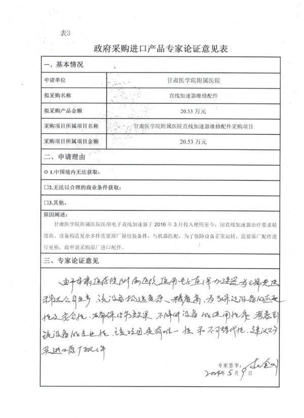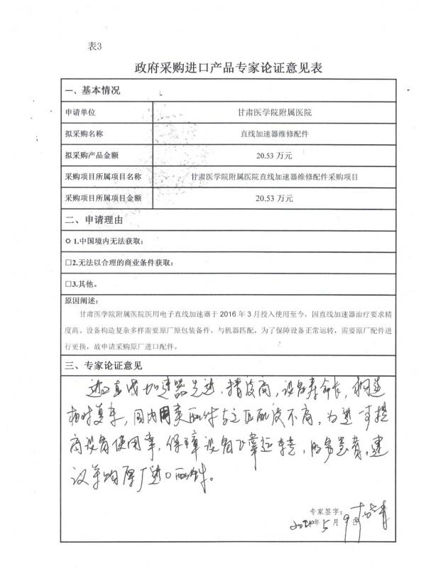 項(xiàng)目名稱:甘肅醫(yī)學(xué)院附屬醫(yī)院直線加速器維修配件采購(gòu)項(xiàng)目