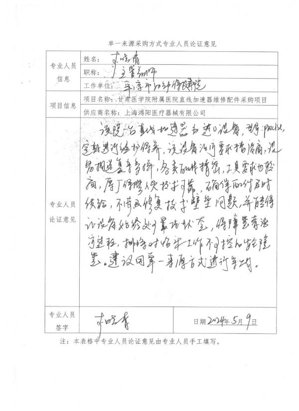 采用單一來(lái)源采購(gòu)方式的原因及說(shuō)明:1、直線加速器治療要求精度高、設(shè)備構(gòu)造復(fù)雜多樣;2、為保證配件和軟件能更好的兼容,需使用原廠配件;3、為了保障設(shè)備的正常運(yùn)轉(zhuǎn),需要原廠或者原廠委托其他專業(yè)公司進(jìn)行維修服務(wù),特提出申請(qǐng)單一來(lái)源采購(gòu)直線加速器維修配件。