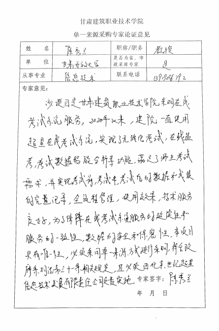 甘肅建筑職業(yè)技術(shù)學(xué)院在線考試系統(tǒng)采購項目單一來源采購公示