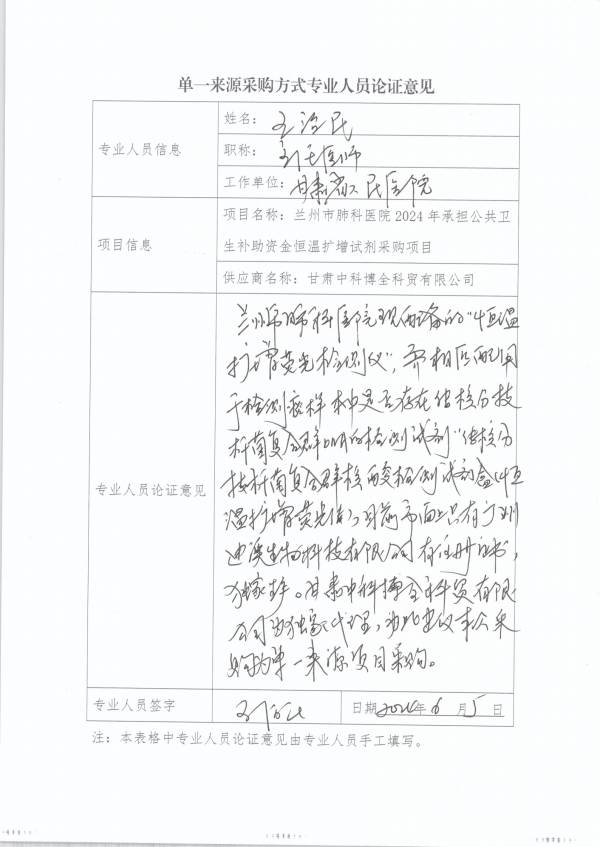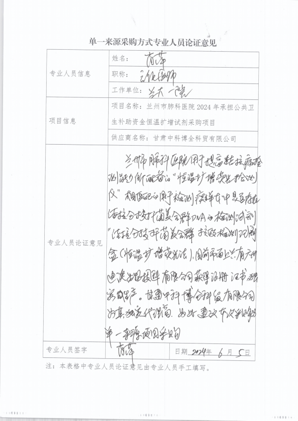 采用單一來源采購方式的原因及說明:因科室業(yè)務(wù)需求,需采購專機(jī)專用恒溫?cái)U(kuò)增試劑,故采取單一來源采購方式。