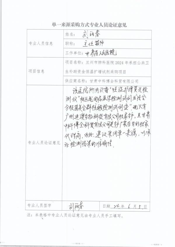 任何供應(yīng)商、單位、或者個(gè)人對(duì)該項(xiàng)目采用單一來源采購方式有異議的,請(qǐng)于公示期內(nèi)以實(shí)名書面(包括聯(lián)系人、地址、聯(lián)系電話)形式將意見反饋至蘭州市肺科醫(yī)院。