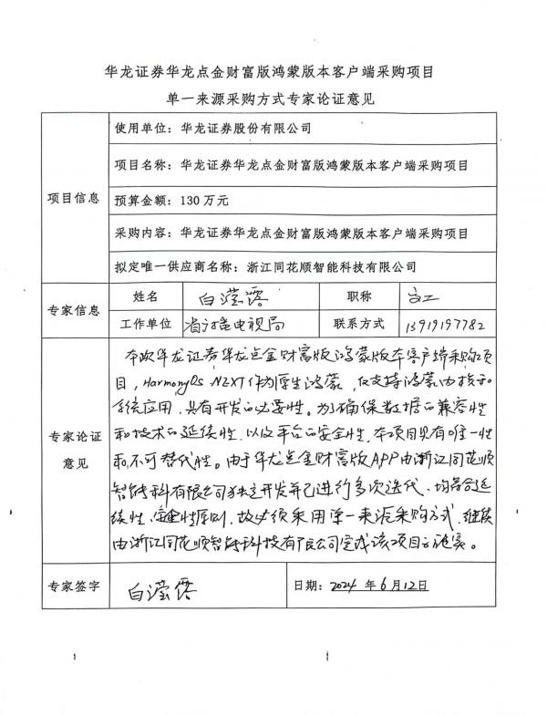 華龍證券華龍點(diǎn)金財(cái)富版鴻蒙版本客戶端采購項(xiàng)目單一來源公示