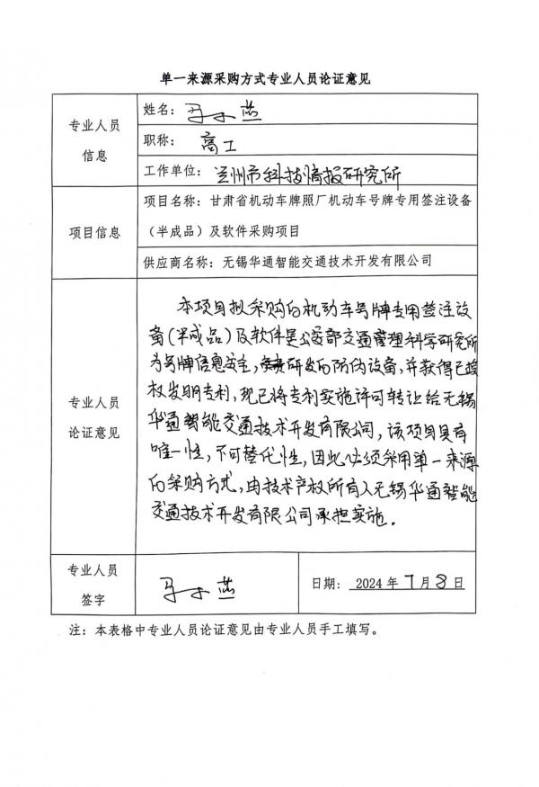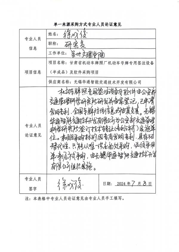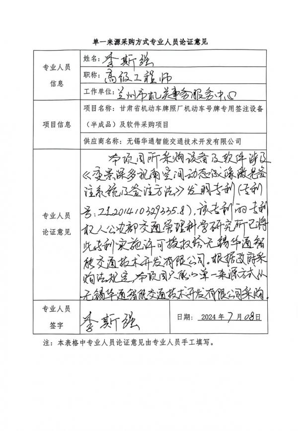 無(wú)錫華通智能交通技術(shù)開發(fā)有限公司依托該專利研發(fā)機(jī)動(dòng)車號(hào)牌專用簽注設(shè)備,并向全國(guó)機(jī)動(dòng)車號(hào)牌制作中心銷售機(jī)動(dòng)車號(hào)牌專用簽注設(shè)備。目前全國(guó)各省的號(hào)牌制作中心均向無(wú)錫華通智能交通技術(shù)開發(fā)有限公司采購(gòu)機(jī)動(dòng)車號(hào)牌專用簽注設(shè)備,因此,依據(jù)《中華人民共和國(guó)政府采購(gòu)法》第三十一條之規(guī)定,本次采購(gòu)具有唯一性,須采用單一來(lái)源方式進(jìn)行采購(gòu)。
