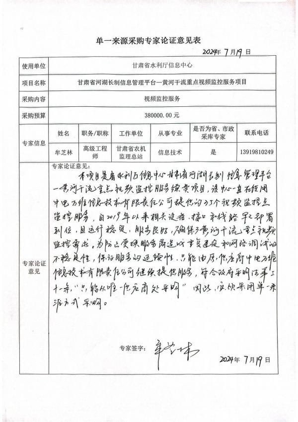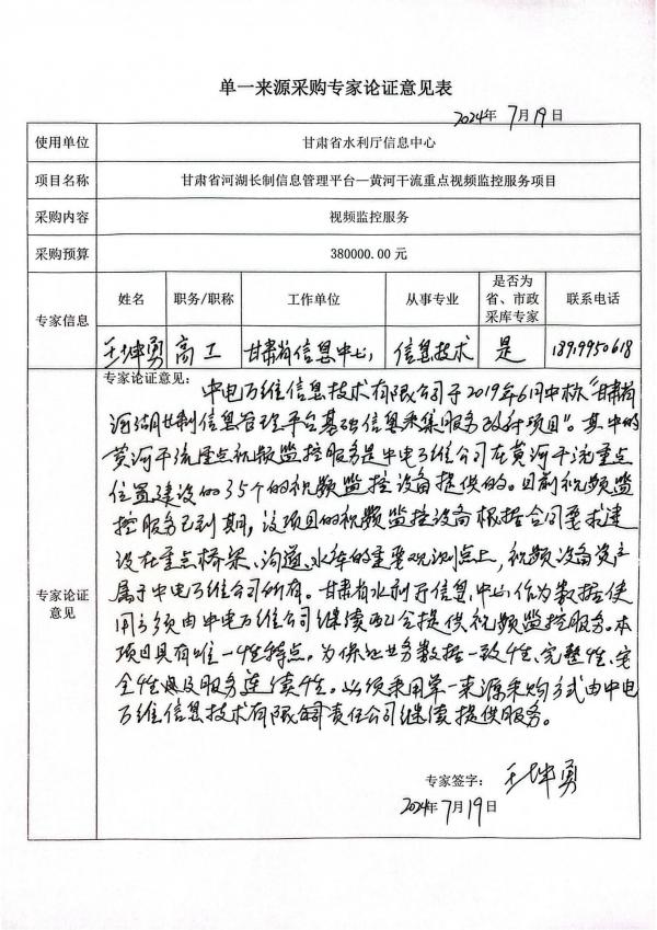 采用單一來(lái)源采購(gòu)方式的原因及說(shuō)明:中電萬(wàn)維信息技術(shù)有限責(zé)任公司于2019年6月中標(biāo)“甘肅省河湖長(zhǎng)制信息管理平臺(tái)基礎(chǔ)信息采集服務(wù)政府采購(gòu)項(xiàng)目,根據(jù)合同要求建設(shè)了黃河蘭州段8條重點(diǎn)山洪溝道監(jiān)控點(diǎn)、劉家峽鹽鍋峽等7座中型以上水庫(kù)的14個(gè)監(jiān)控點(diǎn)、黃河干流蘭州城區(qū)5個(gè)監(jiān)控點(diǎn)組成的35個(gè)現(xiàn)有重點(diǎn)位置的視頻監(jiān)控設(shè)備,視頻設(shè)備資產(chǎn)為中電萬(wàn)維信息技術(shù)有限責(zé)任公司所有,并由中電萬(wàn)維負(fù)責(zé)設(shè)備日常維護(hù),設(shè)備維修。省水利廳信息中心做為服務(wù)購(gòu)買方,僅享有視頻監(jiān)控?cái)?shù)據(jù)使用權(quán)。綜上所述,該項(xiàng)目所采購(gòu)的服務(wù)具有唯一性和不可替代性,根據(jù)《中華人民共和國(guó)政府采購(gòu)法》第三十一條、《中華人民共和國(guó)政府采購(gòu)法實(shí)施條例》第二十七條的規(guī)定,擬采用單一來(lái)源方式進(jìn)行采購(gòu),繼續(xù)由中電萬(wàn)維信息技術(shù)有限責(zé)任公司提供運(yùn)維服務(wù)。
