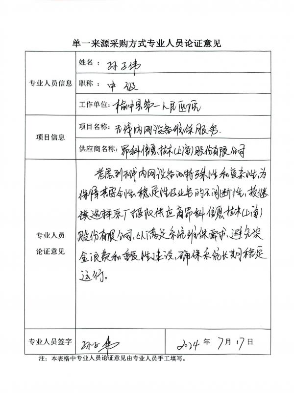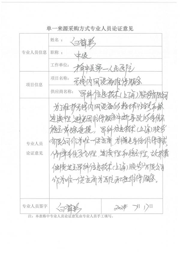 采用單一來源采購方式的原因及說明:榆中縣第一人民醫(yī)院無線內(nèi)網(wǎng)設(shè)備維保服務(wù)將于2024年8月到期,為了保障無線內(nèi)網(wǎng)設(shè)備維保服務(wù)的安全性與連續(xù)性,確保醫(yī)院無線內(nèi)網(wǎng)設(shè)備的順暢運(yùn)行及維保服務(wù)的專業(yè)性和高效性,避免因維保服務(wù)的中斷導(dǎo)致的系統(tǒng)不穩(wěn)定或業(yè)務(wù)受損,昂科信息技術(shù)(上海)股份有限公司作為唯一供應(yīng)商,為滿足維保需求,避免資金浪費(fèi)和重復(fù)性建設(shè),鑒于以上原因,依據(jù)《榆中縣第一人民醫(yī)院采購管理內(nèi)部控制制度(試行)》第五十四條之規(guī)定,采用院內(nèi)單一來源采購方式。